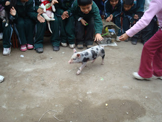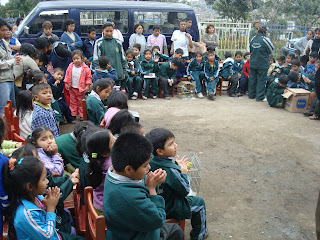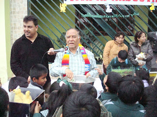 Miss Mayra y sus niños del 1er.grado acompañados por el Psicólogo Carlos.