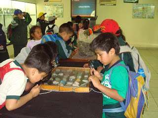 observando las piedras y metales de la minería Peruana.