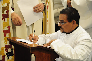 Obispo consagrando a Pastor Zevallos como Diácono Anglicano.