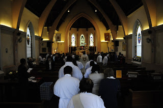 Obispo William Godfrey consagrando a los nuevos presbíteros Anglicanos Anderson y Ruben.