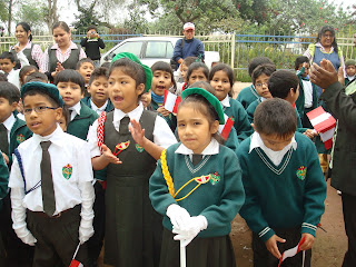 Celebrámos el día de la Bandera. con la juramentación de los policias escolares de cada aula, para dicho evento contámos con la presencia del capitán Martín Miranda de la comisaría de pamplona dos. quién estuvo a cargo de la juramentación.