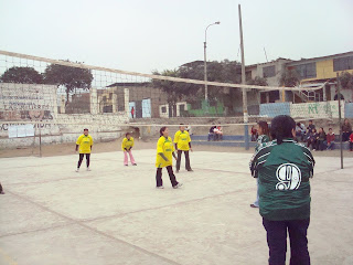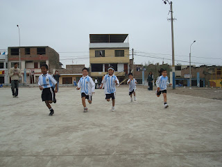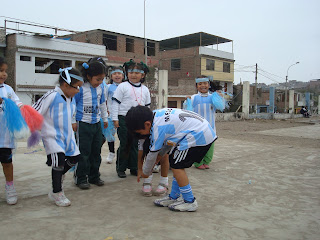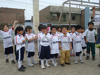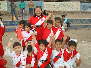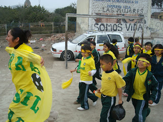 Barra del 1ro "A" Perú con miss Marlene animando a los padres en la final del fulbito.