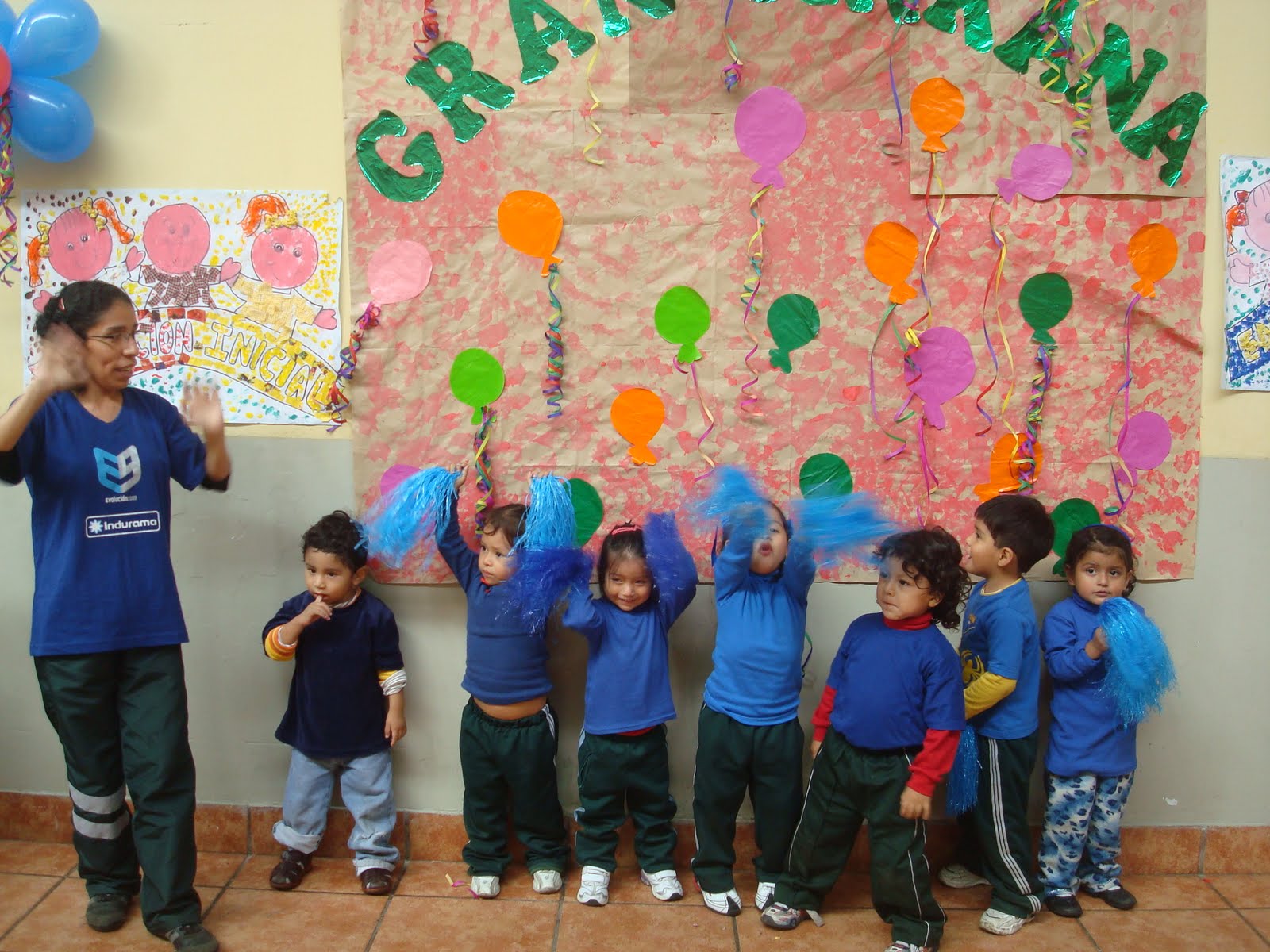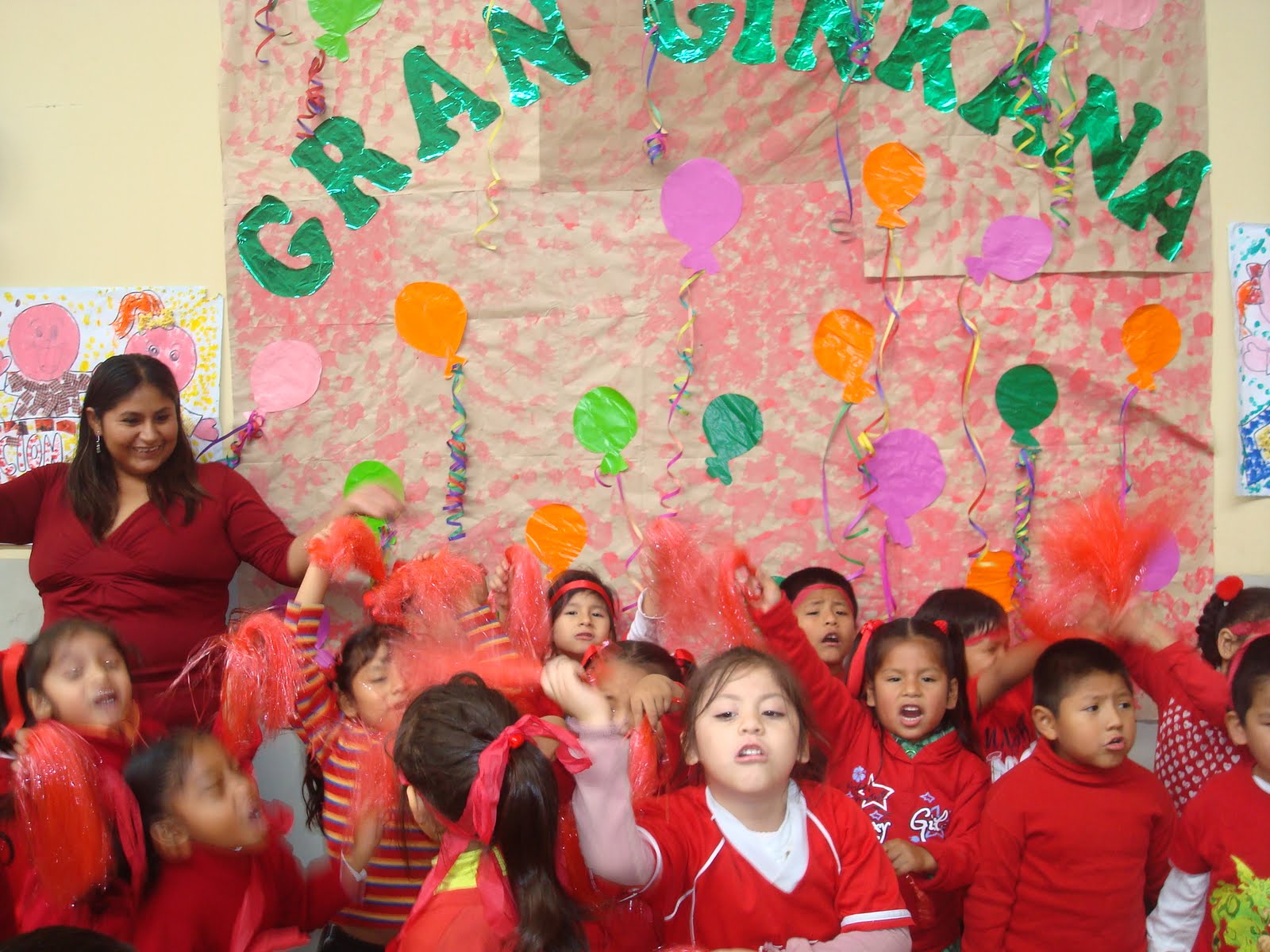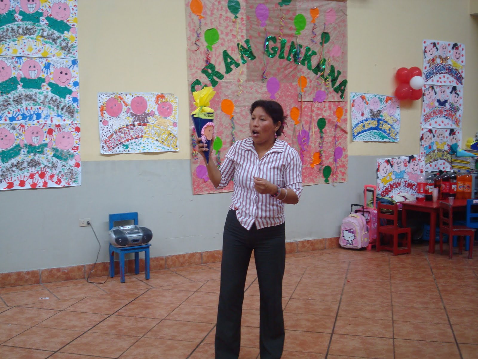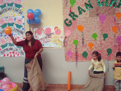 Miss Gladys contando los globos.
