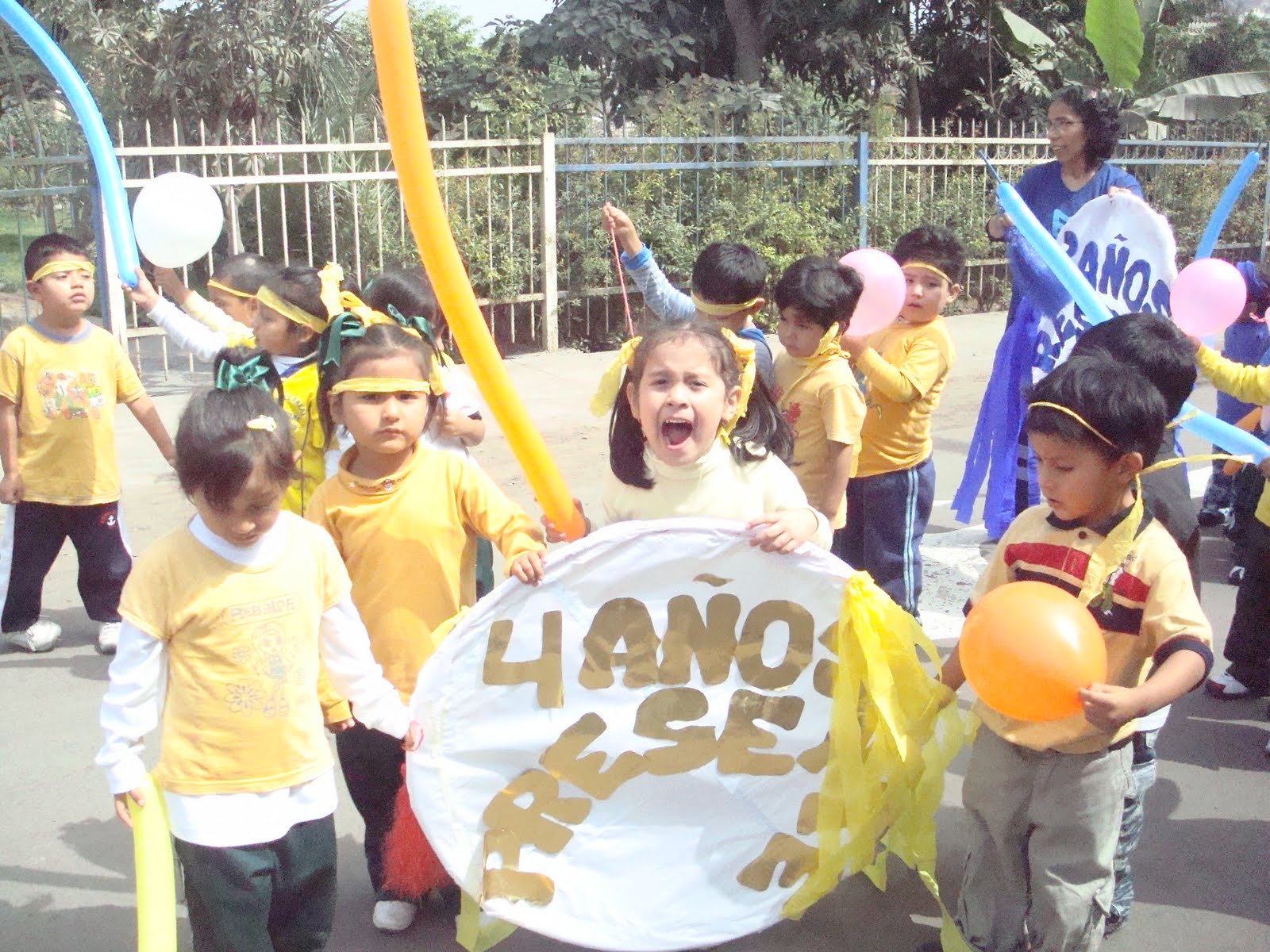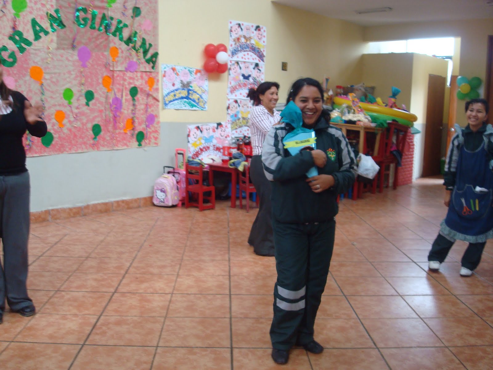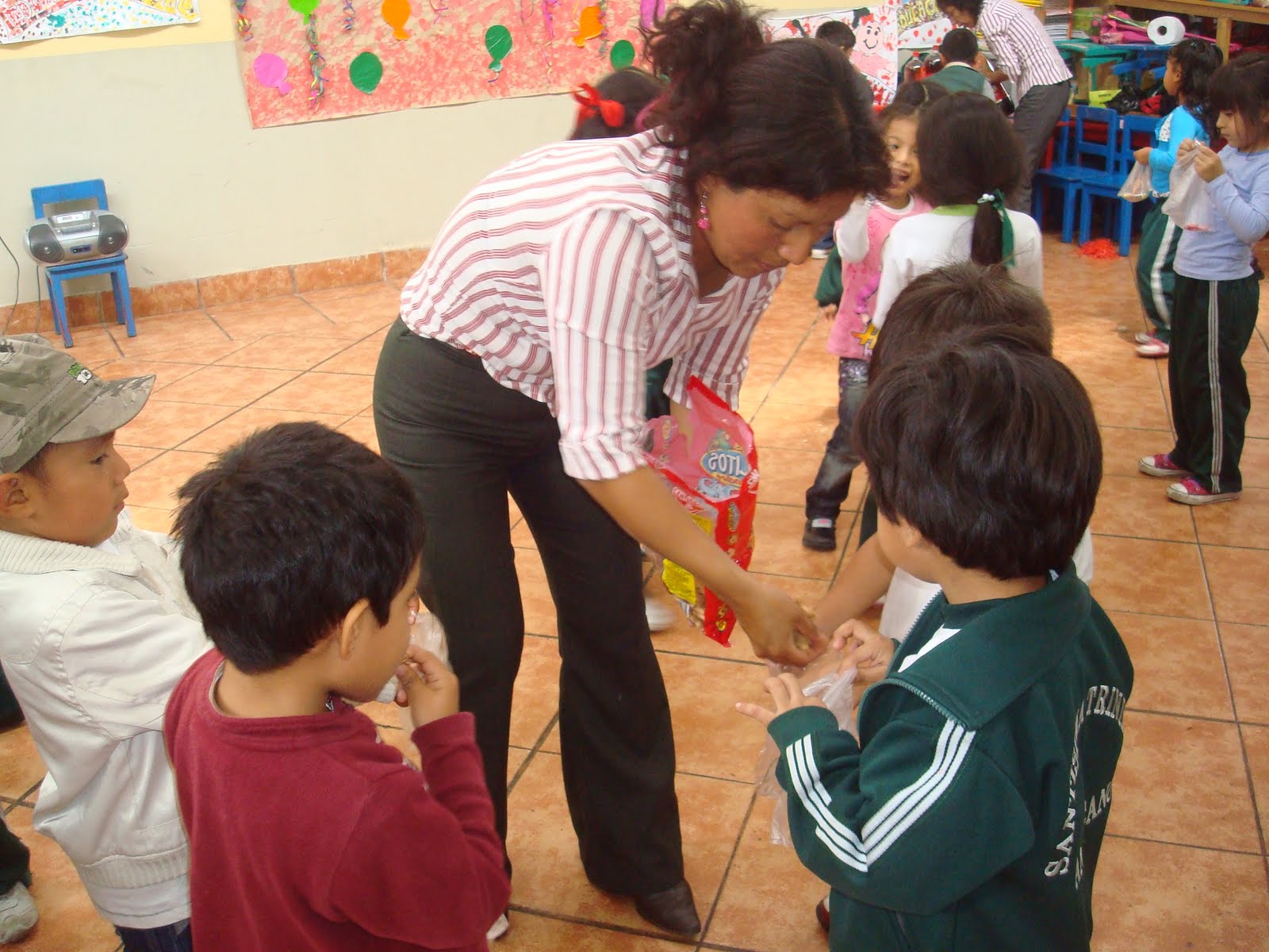 Miss Gladys contando los globos.