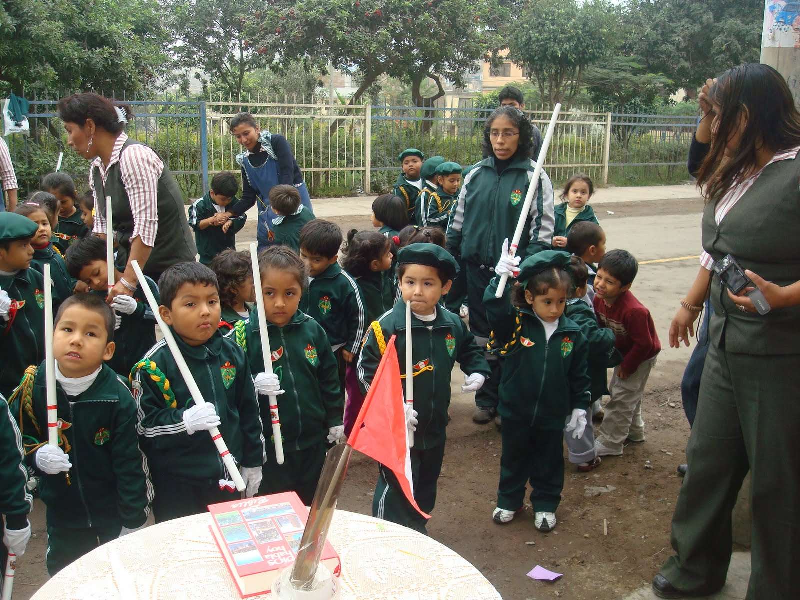 la Directora Isabel saludando a las profesoras y niños en su día.