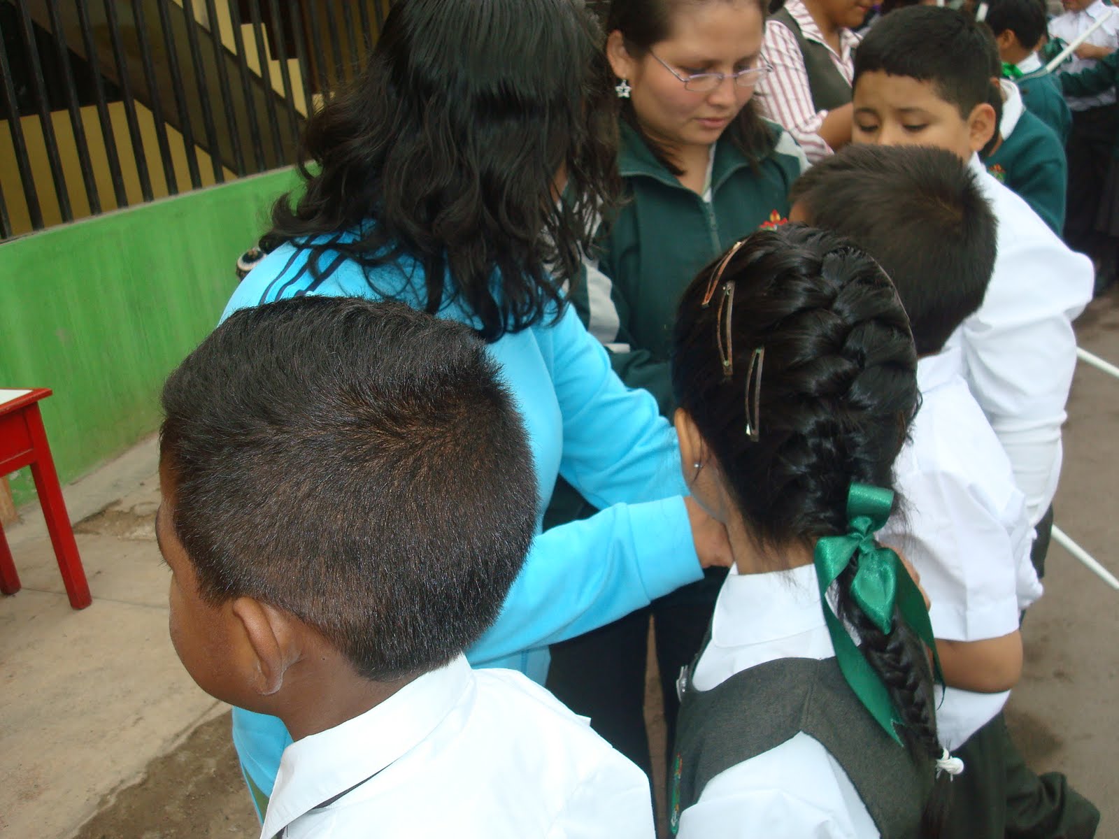 las Madres y Maestras colocándole sus cordones.