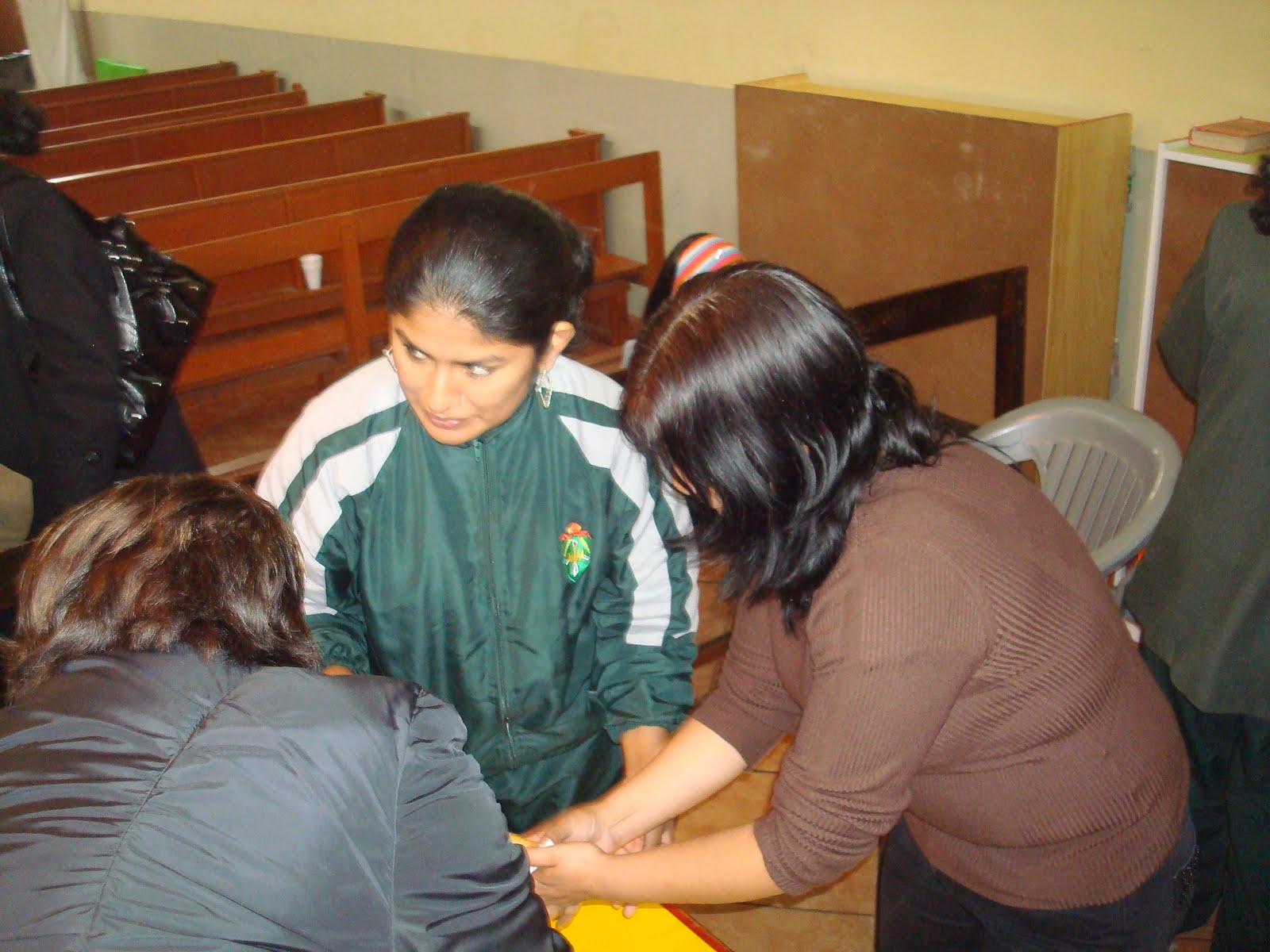 Miss Rocio , Lic Erika y Diacona Norma a cargo del compartir (tamales con cafe)