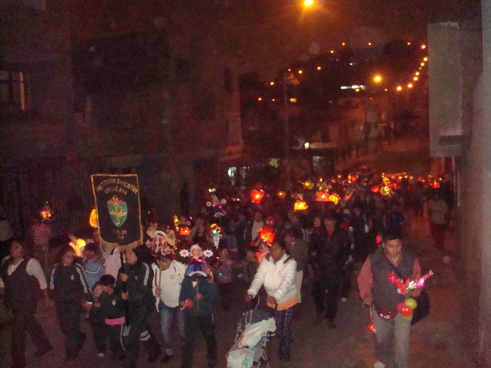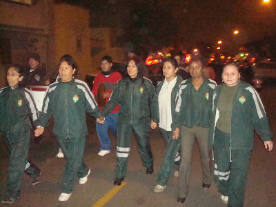 El recorrido se inició a las 6:30 pm. por las principáles calles de nuestra comunidad, donde padres, hijos y amigos nos acompañarón hasta finalizar el recorrido.
