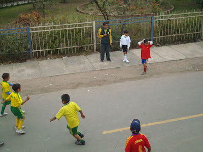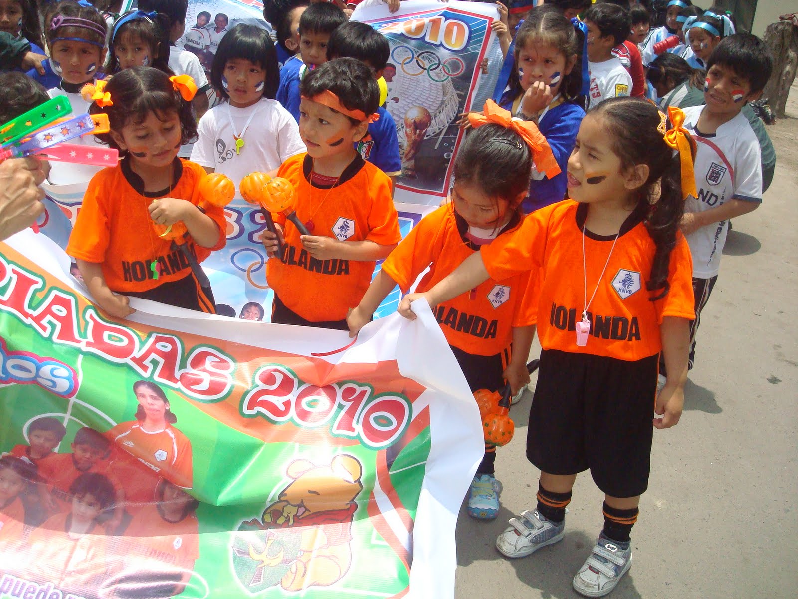 En la semana del deporte, toda la familia participa con mucho entusiasmo y alegría cada aula tiene sus equipos. Niños y padres de familia; las madres en el voleyboll y los padres en el futboll.