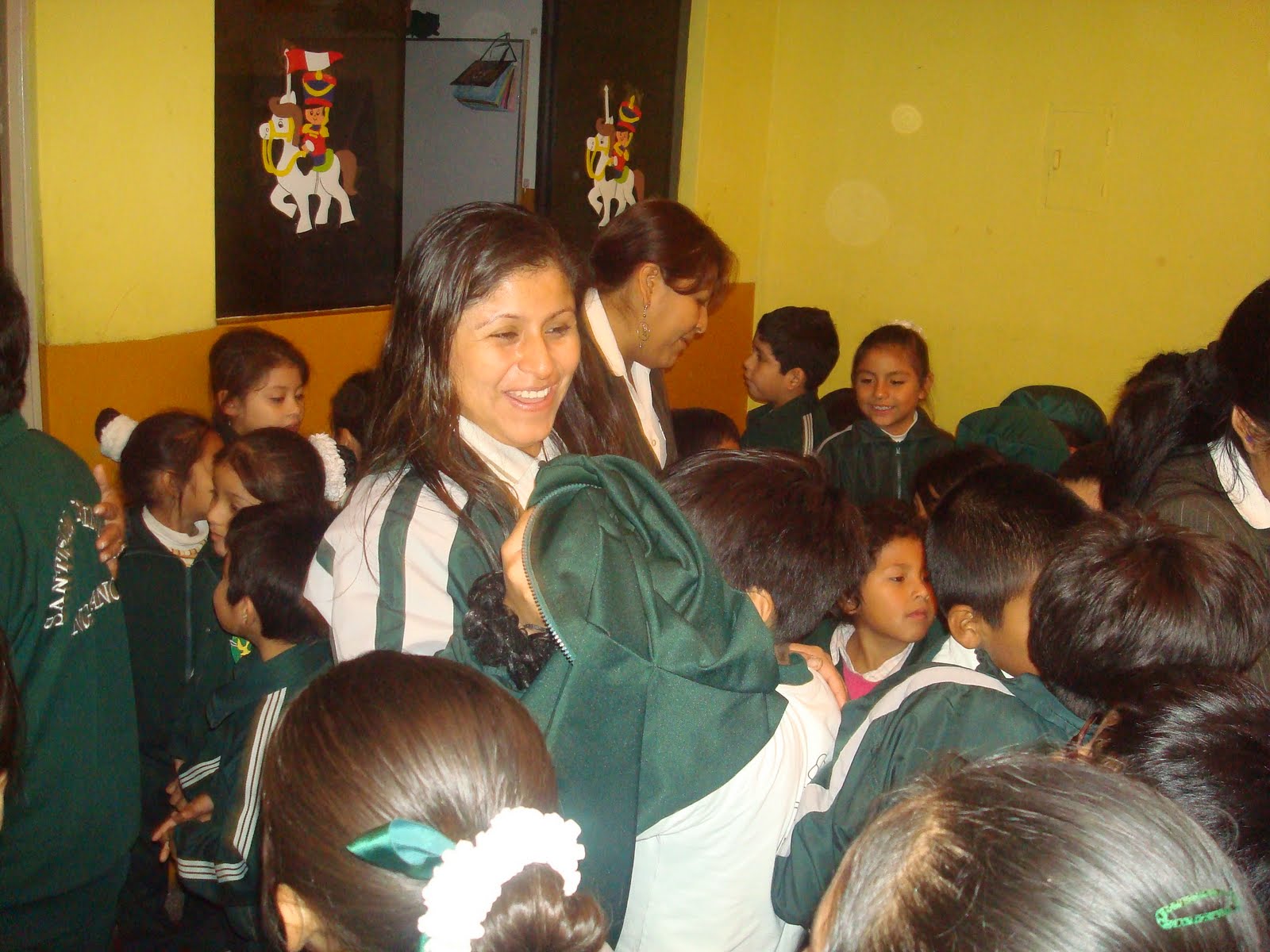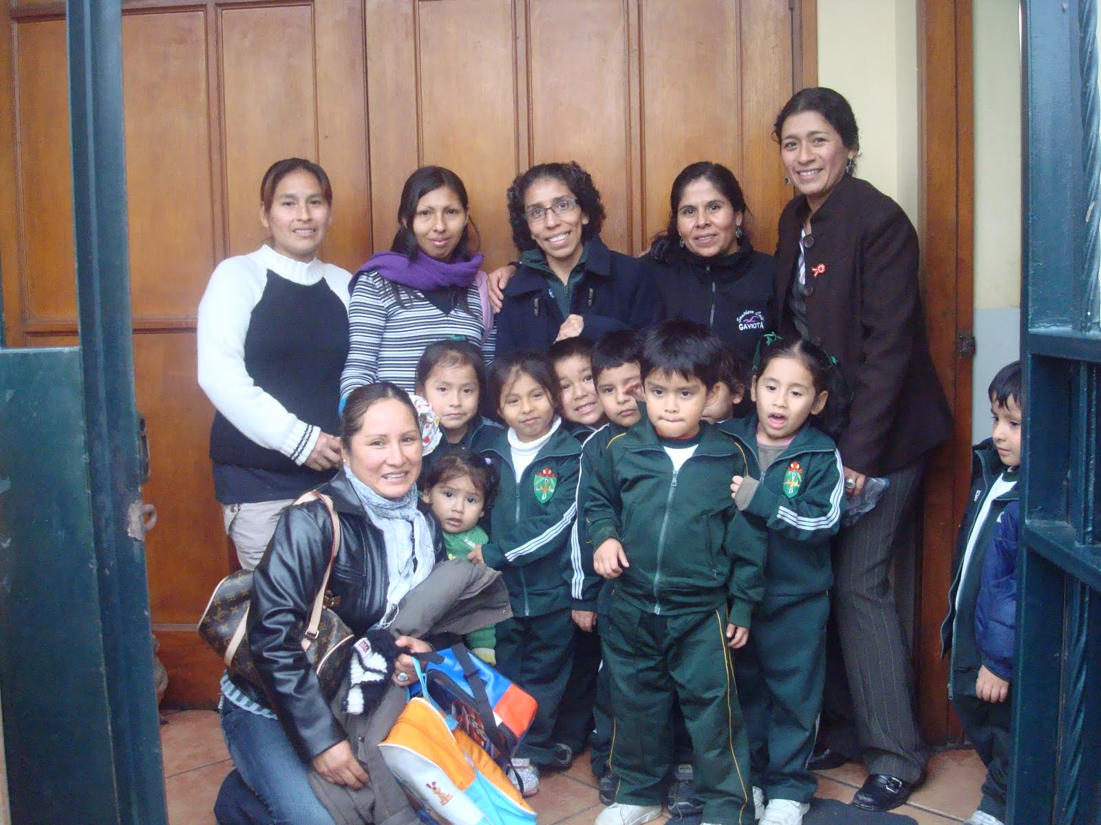 Durante la mañana antes de Iniciar las clases .Miss Nely aula de 4 años con mamitas de su aula.