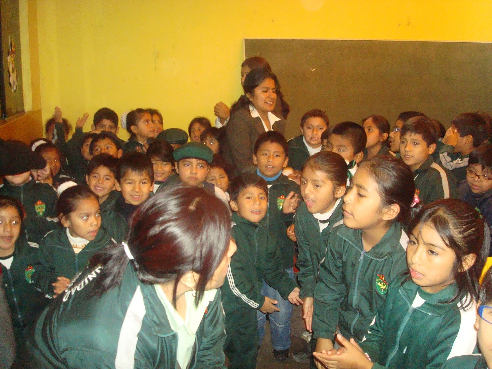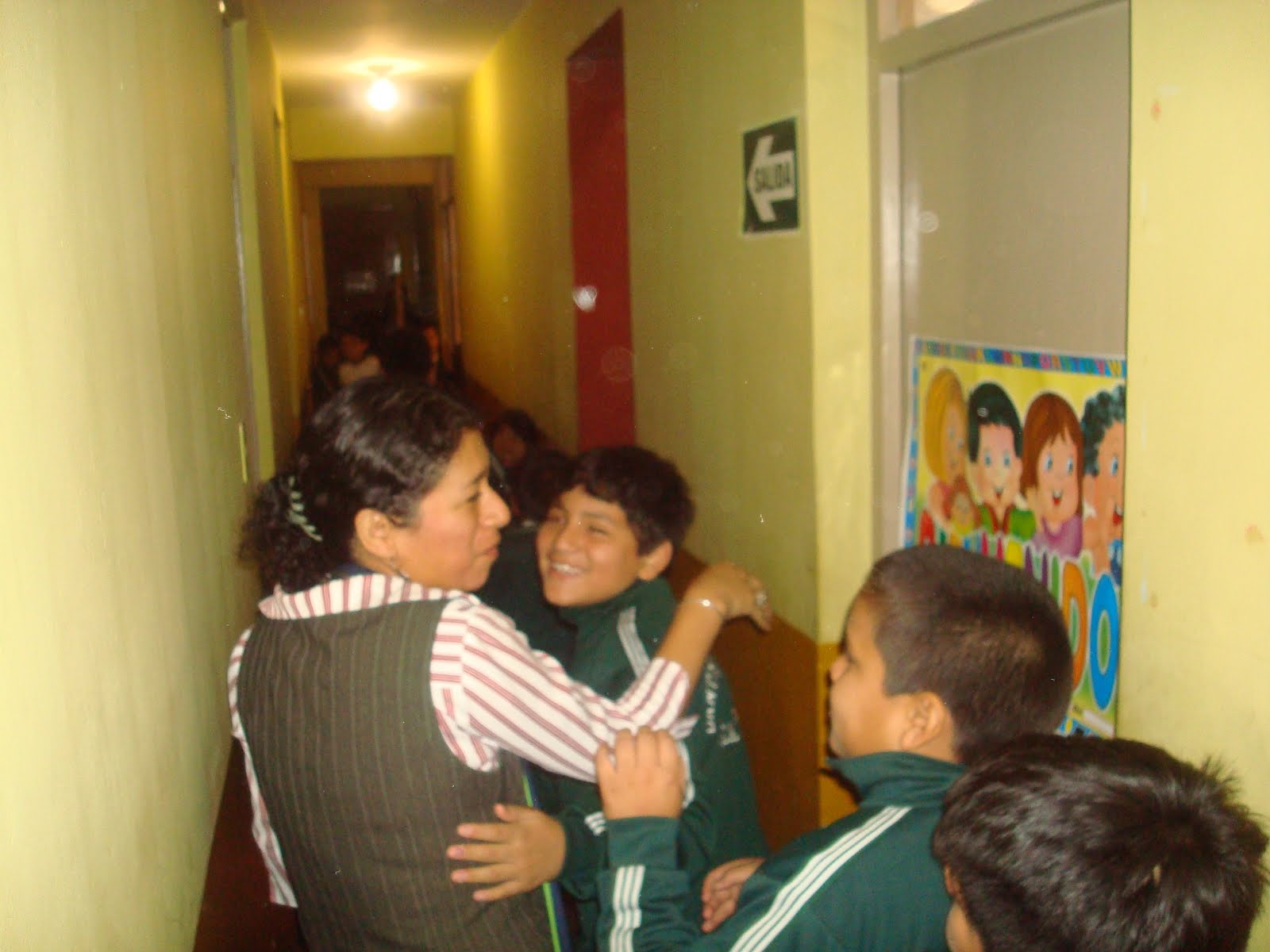 Nuestros alumnos alegres y tratando de dar lo que reciben cada día de sus maestras.